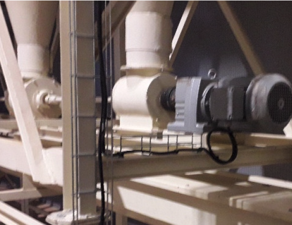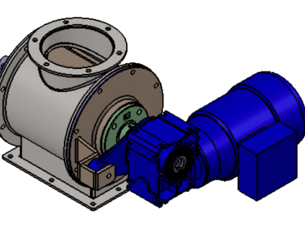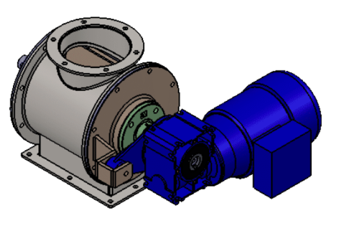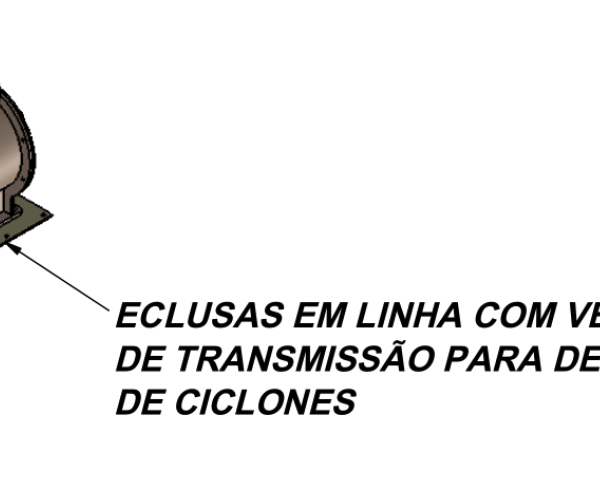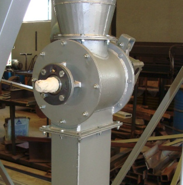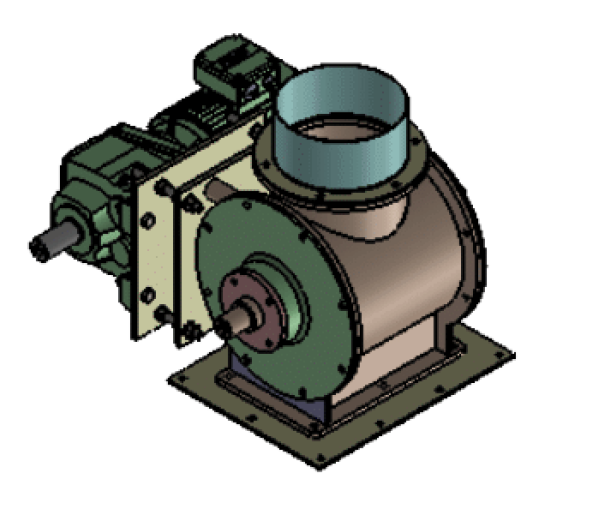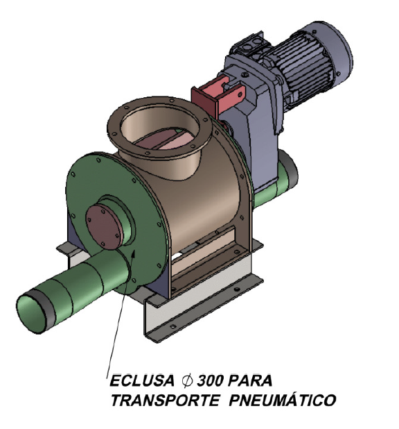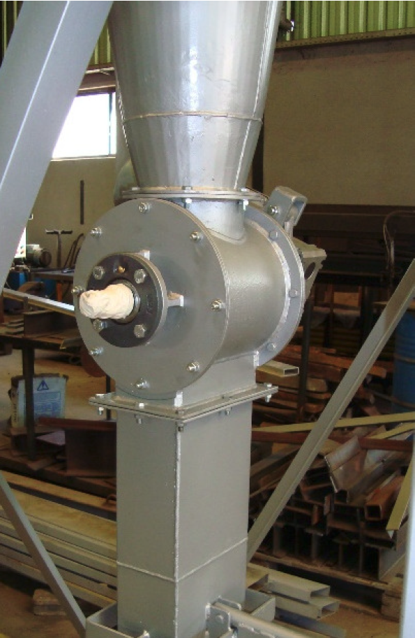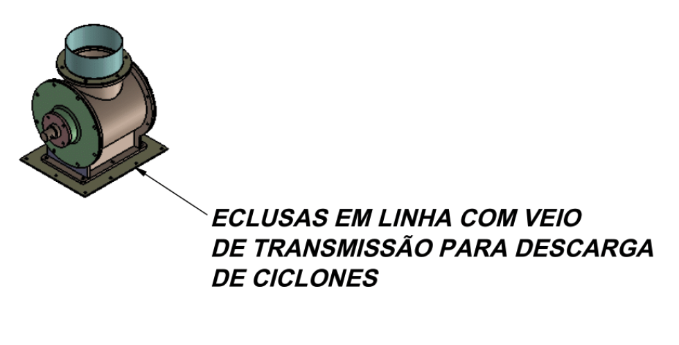 Eclusas em linha com o veio de transmissão para descarga de ciclones, depósitos, silos, transporte pneumático ou outros.